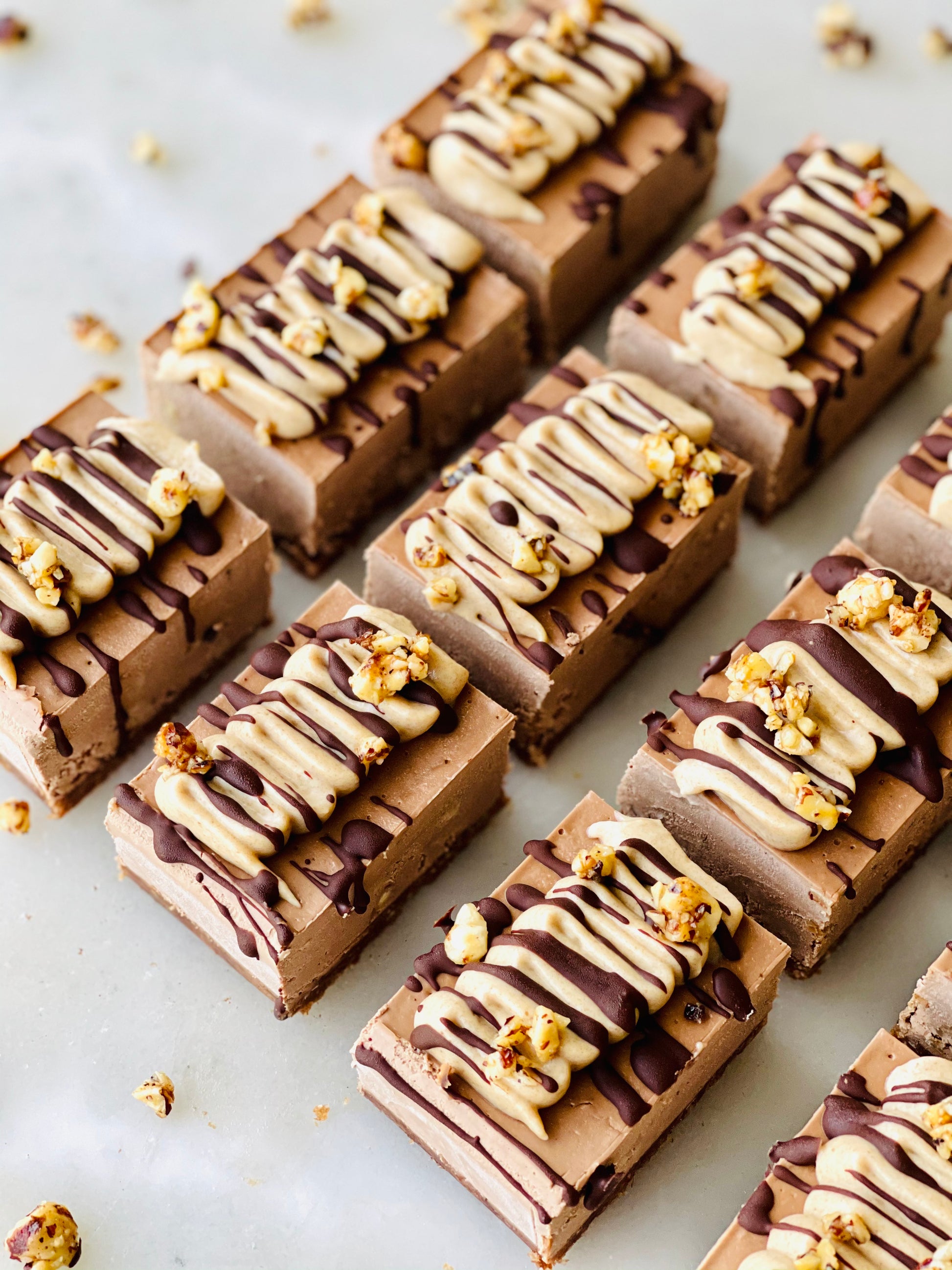 Hazelnut cocoa crust. Cocoa mousse. Candied hazelnut. Date caramel.