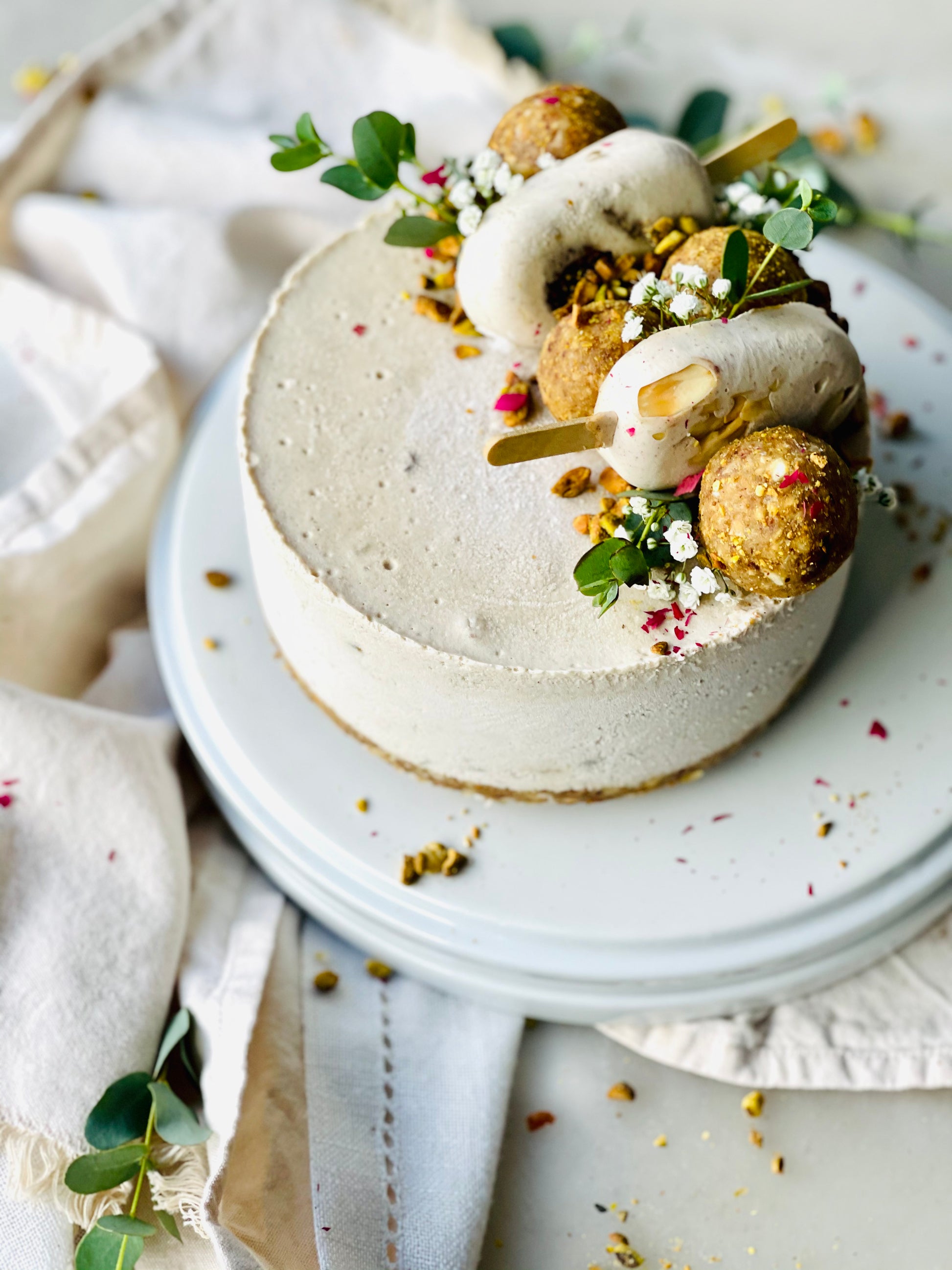 The cake will be decorated with truffles, ice cream magnums , edible gold , etc