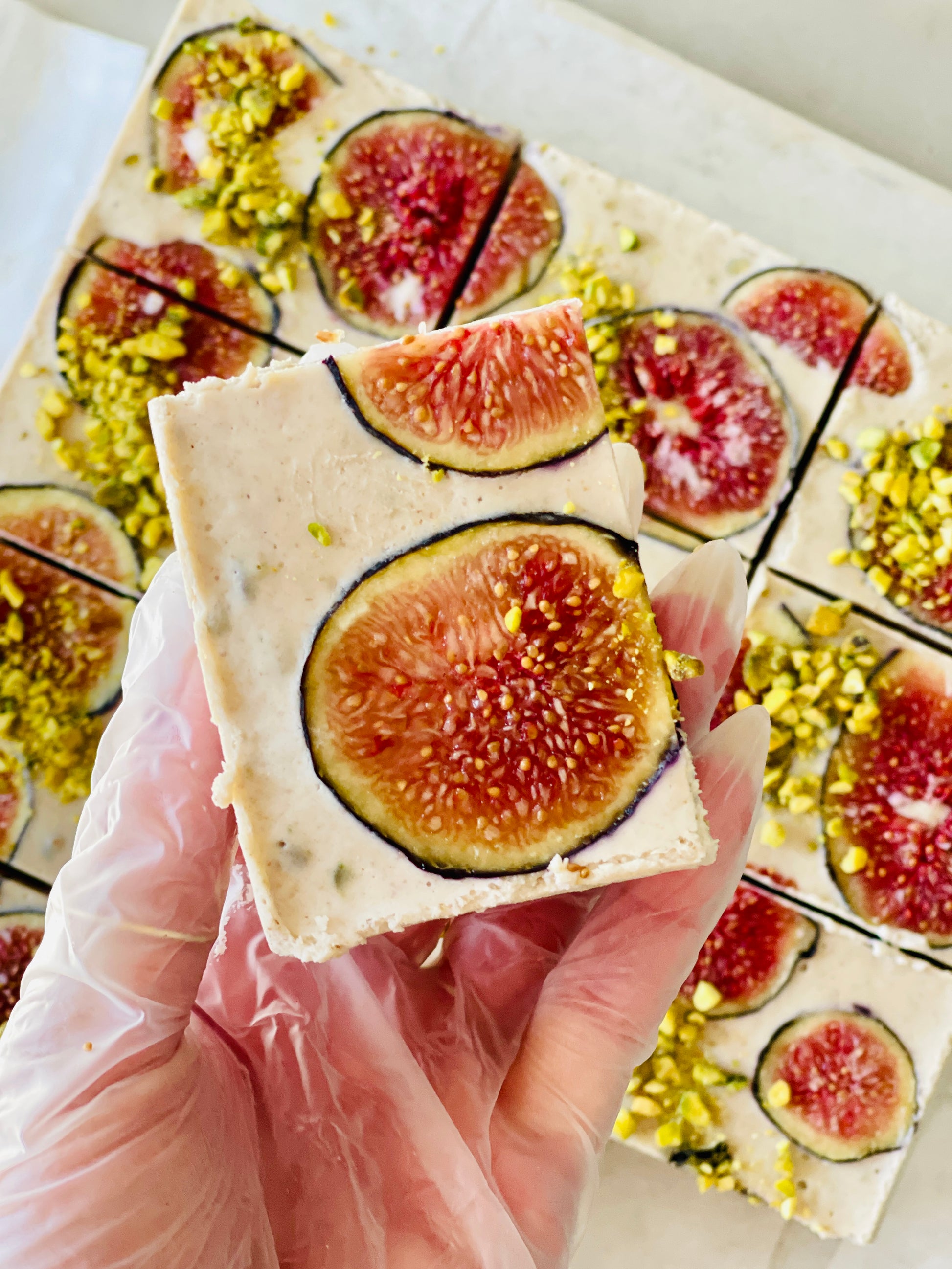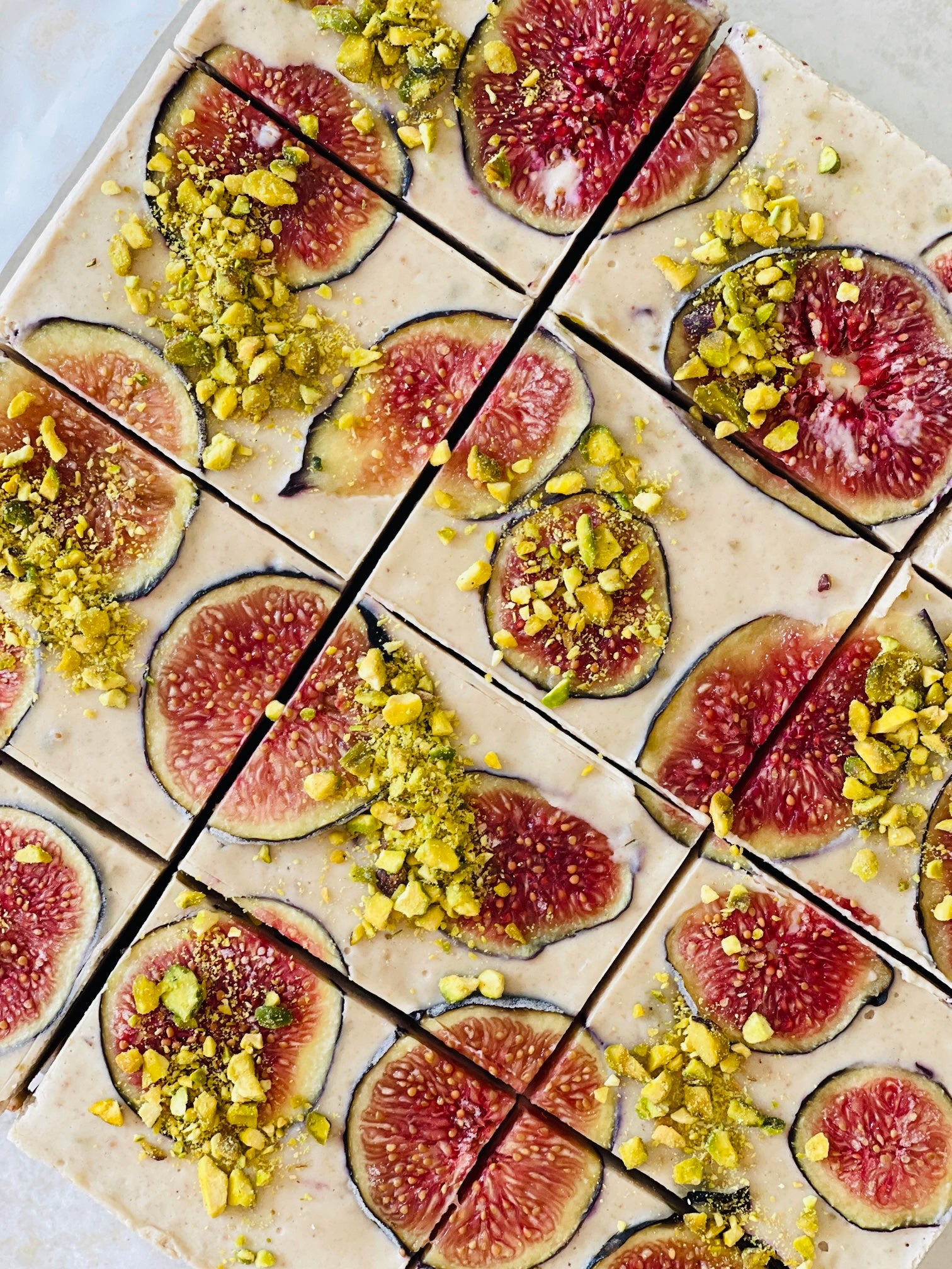 Hazelnut crust. Date caramel. Roasted pistachio. Fresh fig.