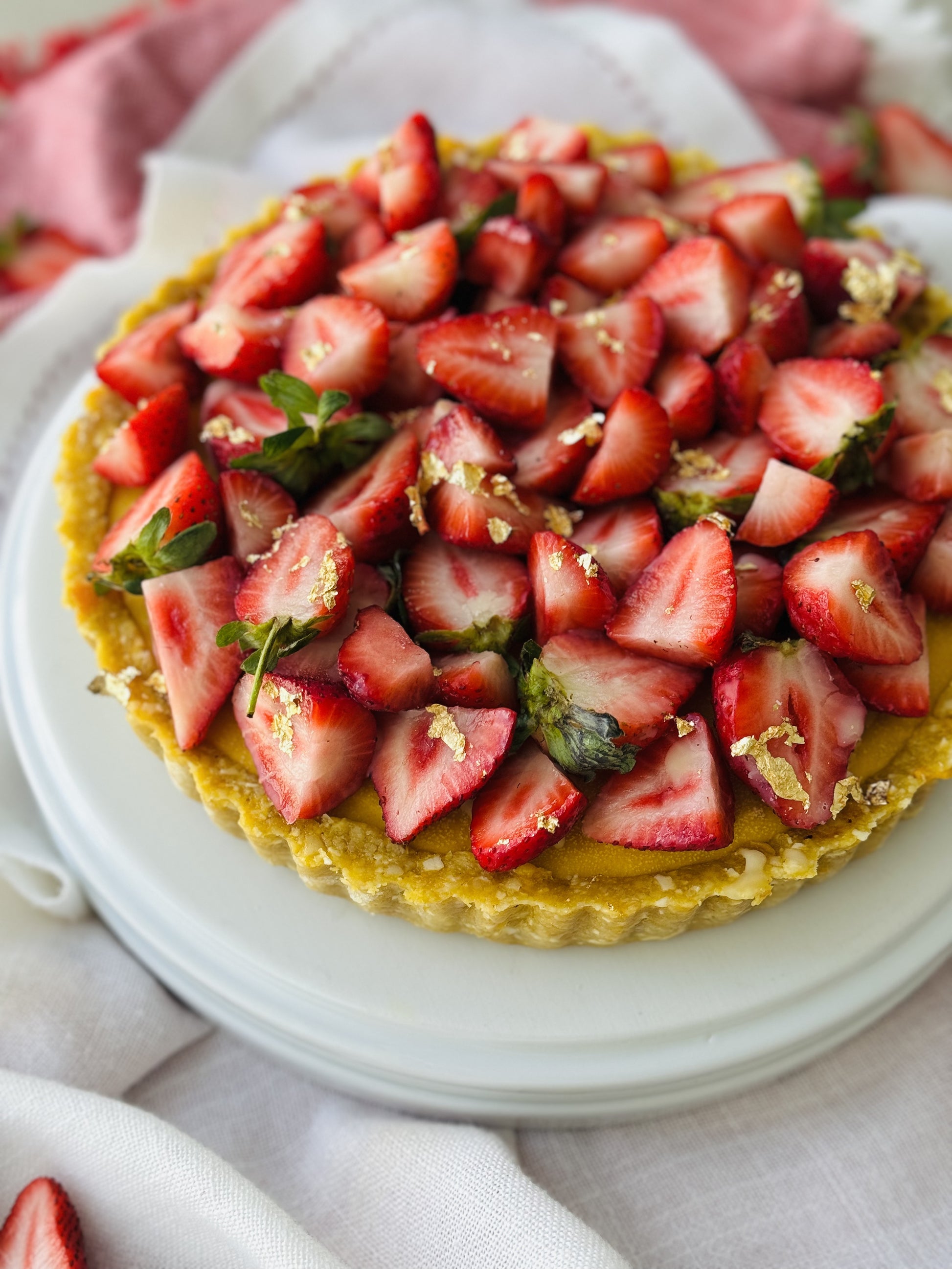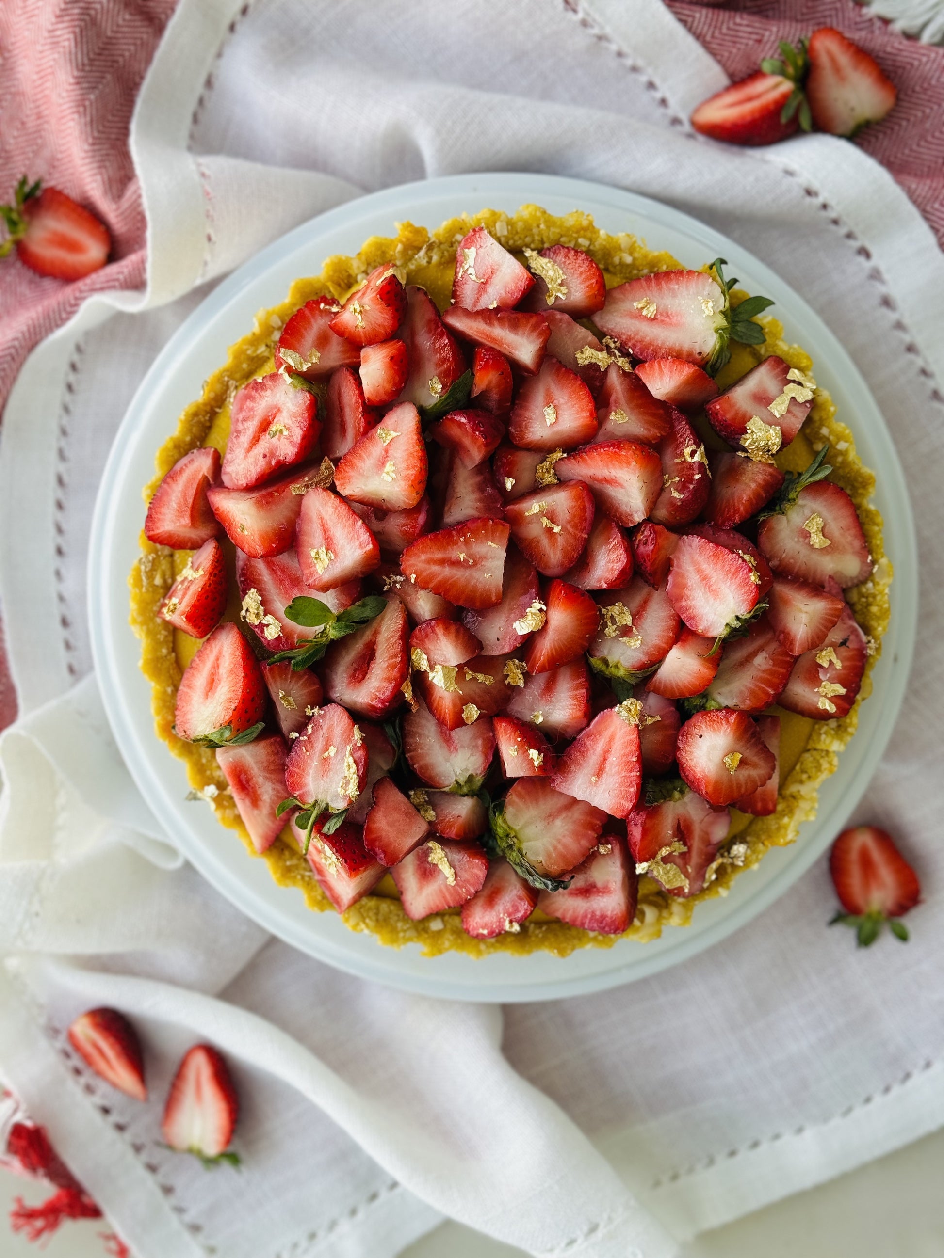 Just look at this Mango and Strawberry Tart—an absolute stunner! This tart starts with a crisp, "buttery" almond crust. Then, it's filled with a silky, velvety mango purée, bursting with natural sweetness and a hint of tang. As if that wasn't enough, we top it off with fresh, juicy strawberries, artfully arranged to create a visual masterpiece. Each bite is an explosion of bright, fruity flavors that dance on your palate—pure, unadulterated joy in every mouthful.