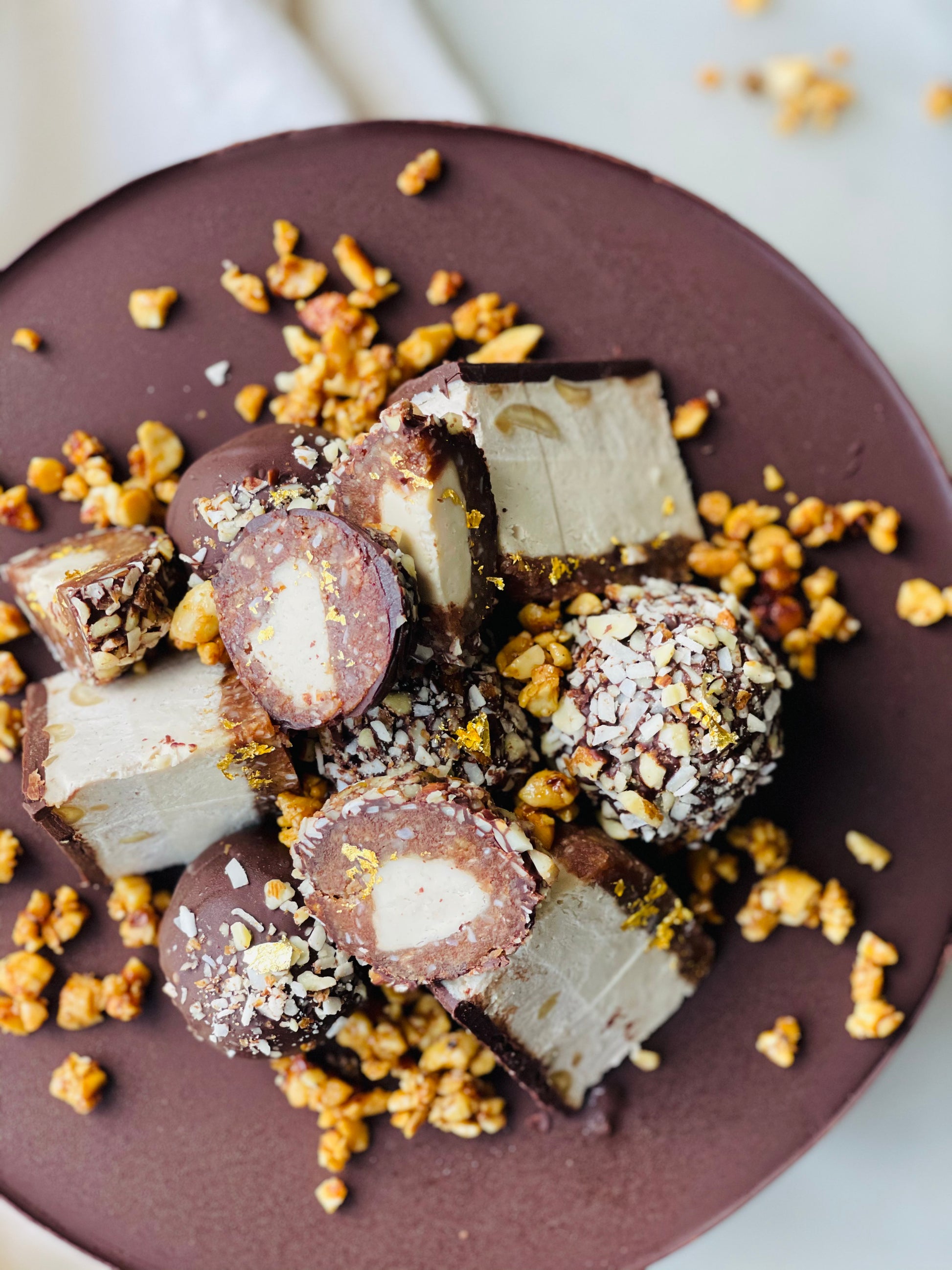 Ingredients: almond, coconut, dates, cashew, peanuts, cocoa powder, cocoa butter, coconut milk, coconut oil, vanilla extract, pink salt, agave.